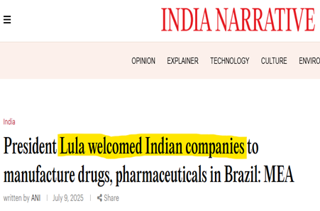 India’s pharmaceutical industry, home to companies like Cipla, Sun Pharma, and Dr. Reddy’s, is a major global supplier of affordable, high-quality medicines. These firms are already expanding their footprint across South America, providing both finished drugs and Active Pharmaceutical Ingredients (APIs) that strengthen local healthcare systems.